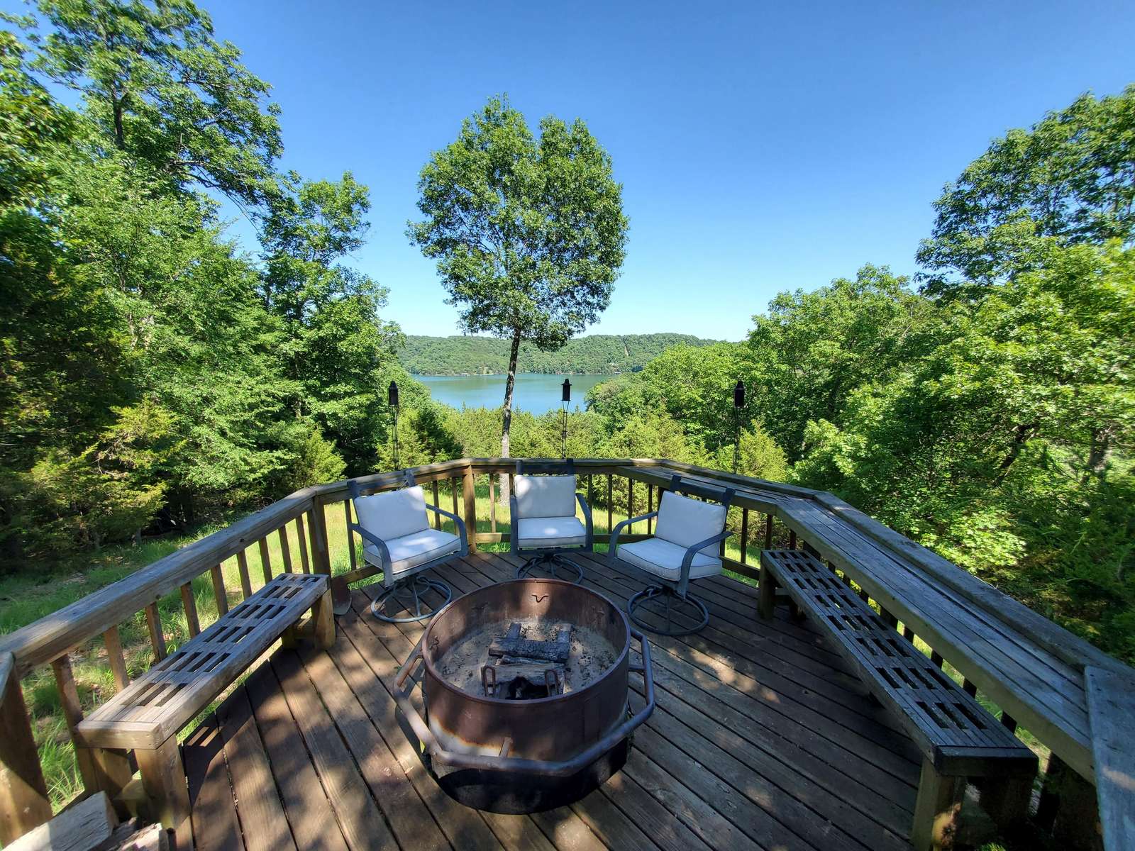 Enjoy the large fire pit built into the deck while sitting under the stars (firewood included).