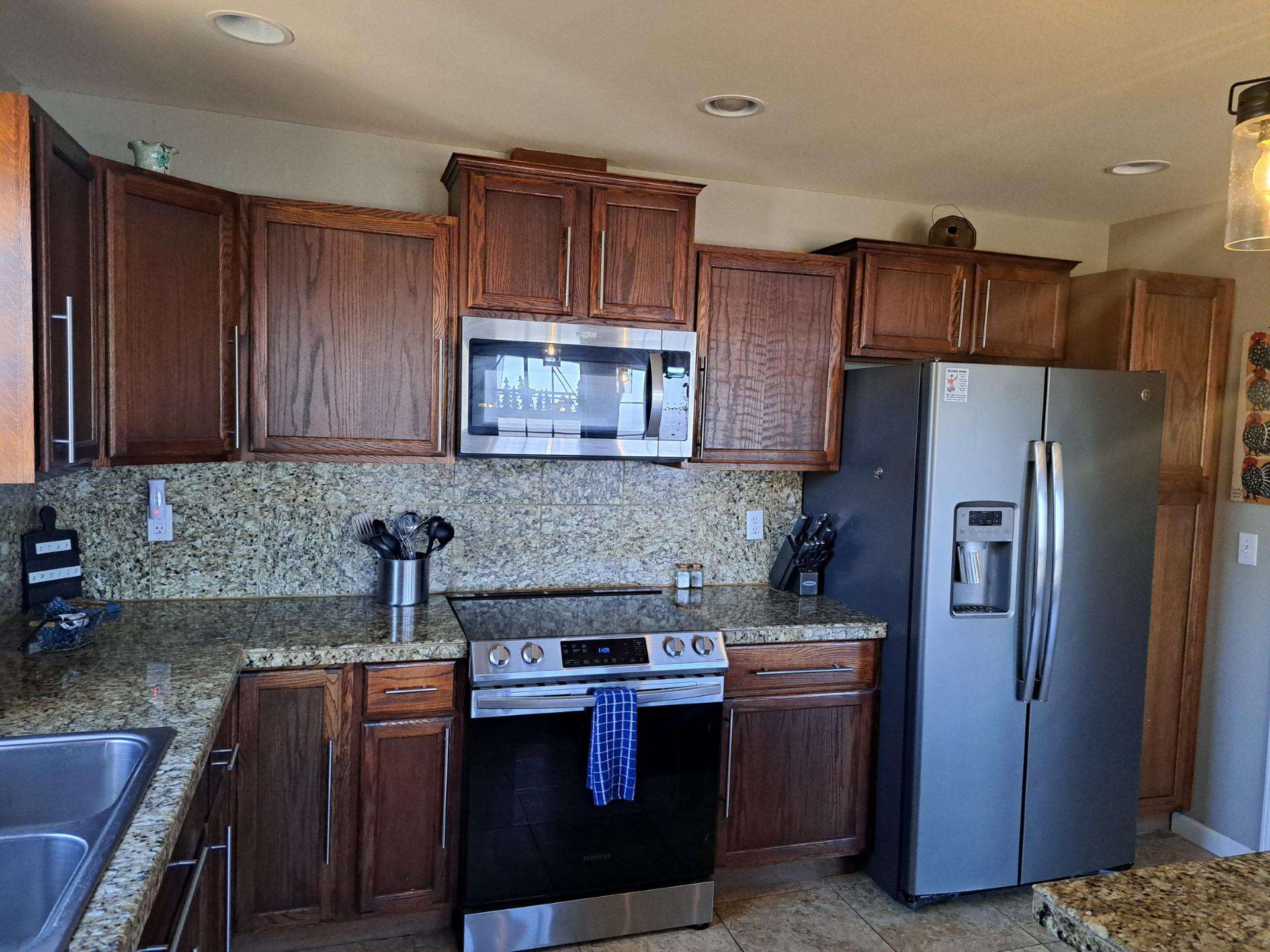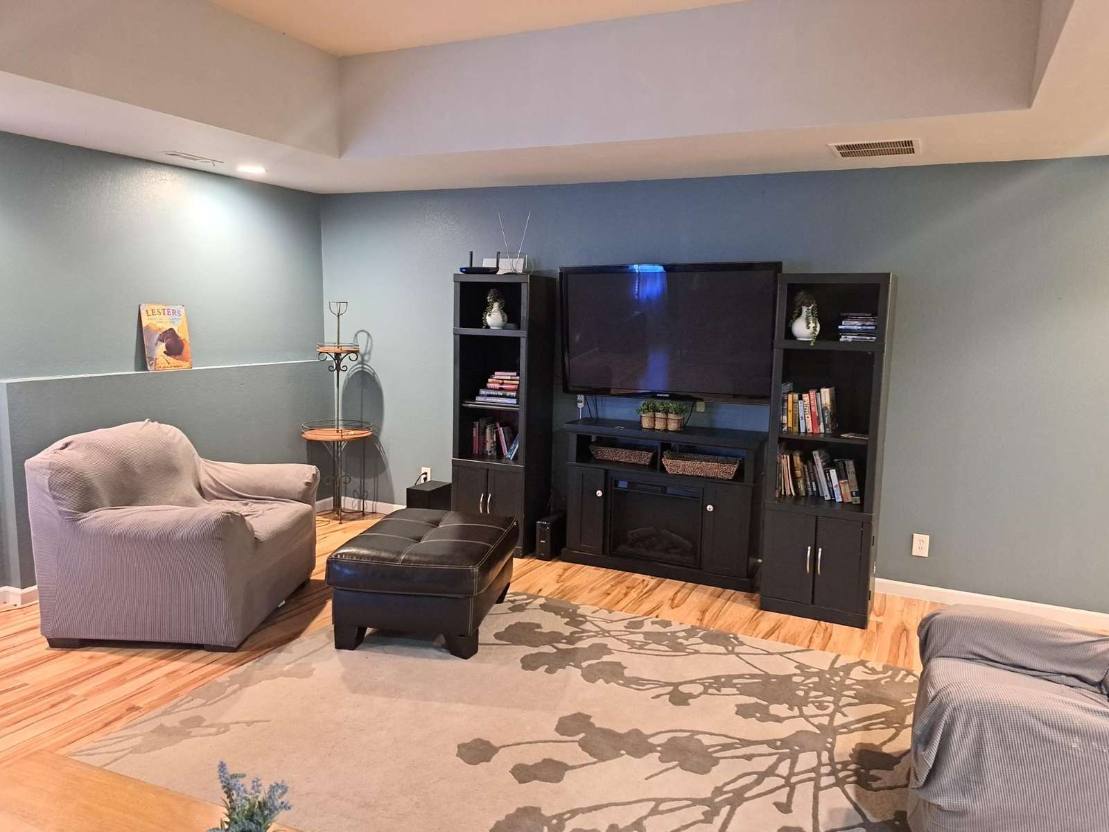 Easy living open floor plan, with Living Room on the main floor and Family Room downstairs. Large generously equipped kitchen area and nice dining area for large groups.