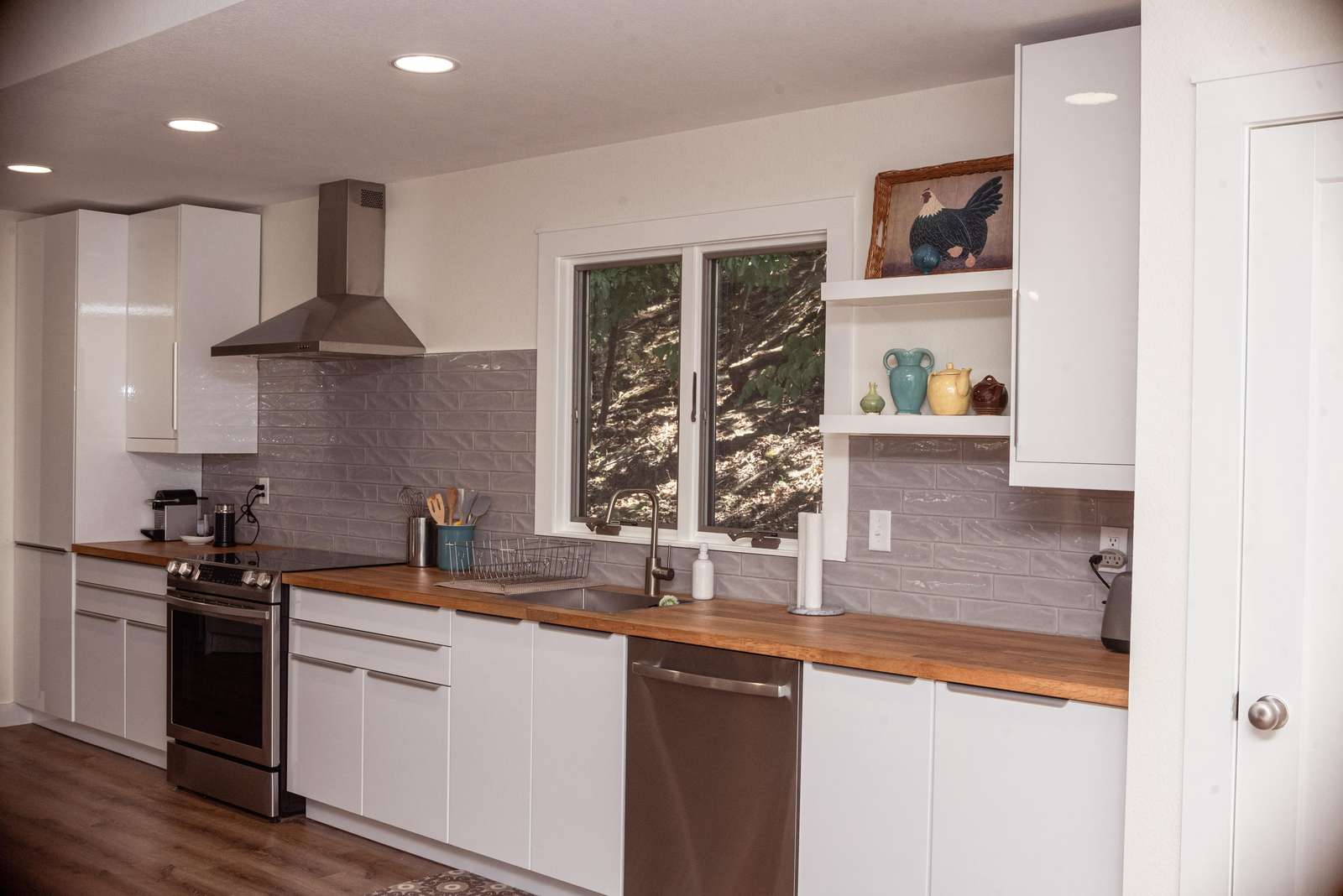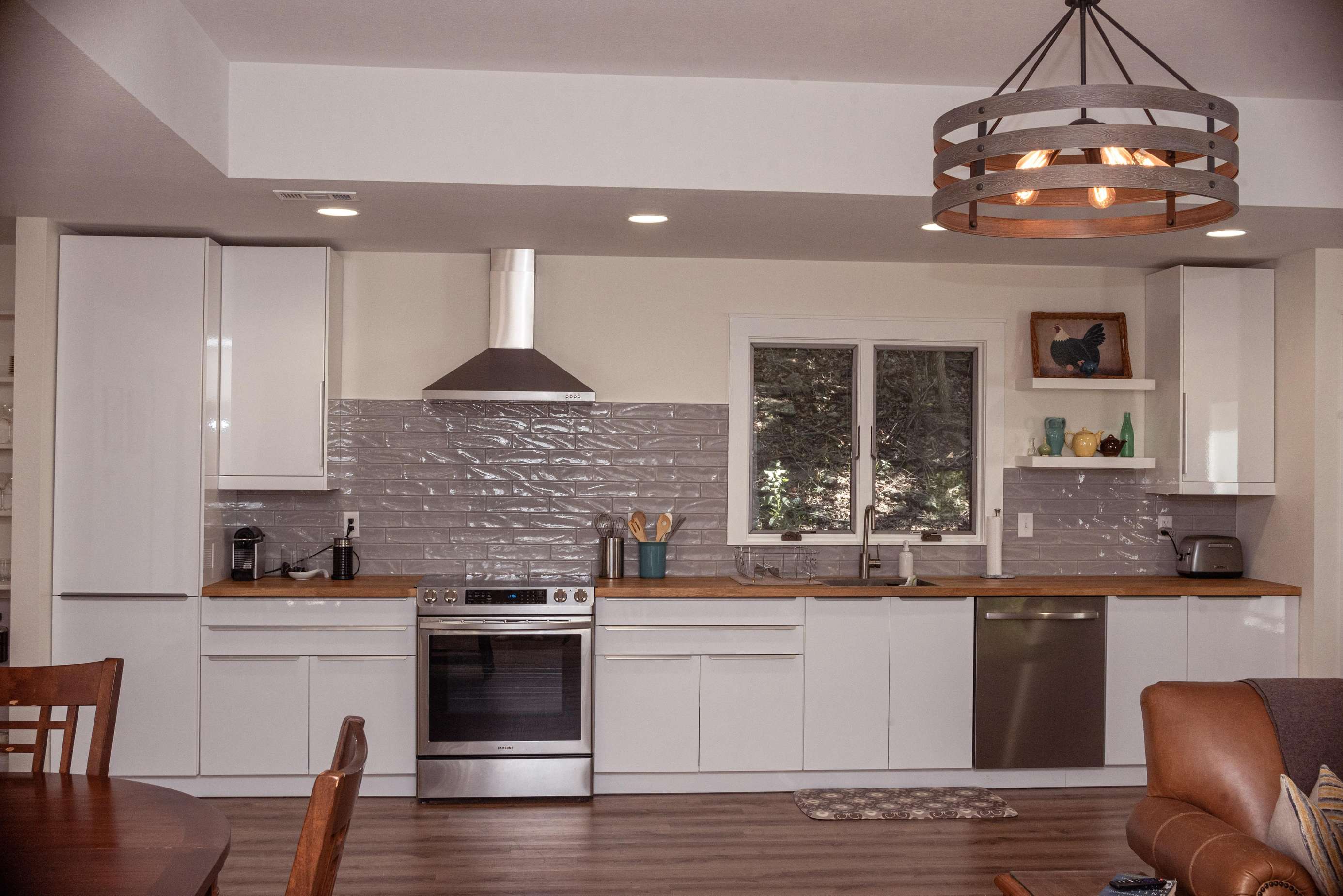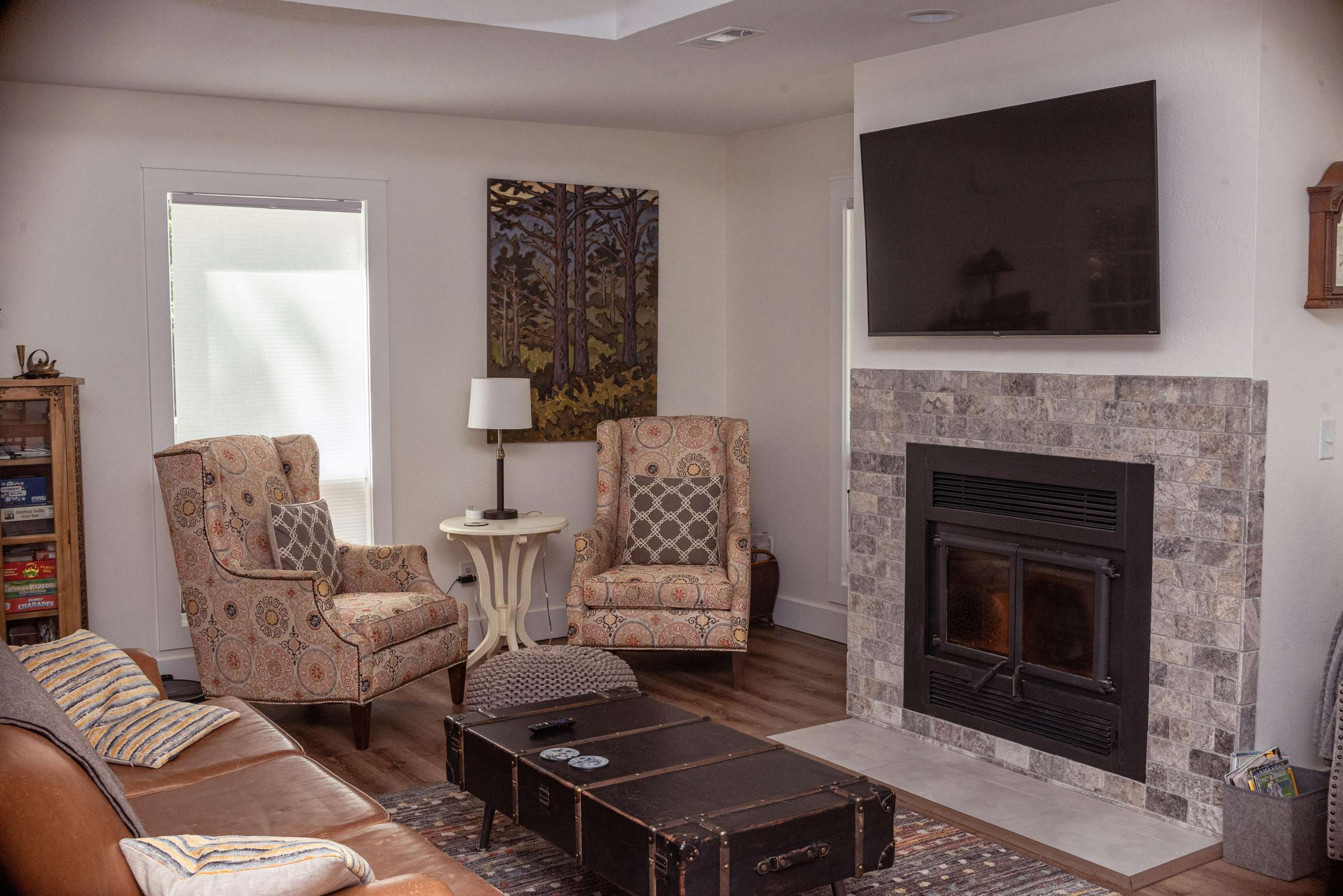 Renovated in 2021 in down-to-the-studs make-over, this 1500 square foot home features open concept great room with combined living, dining and kitchen area, 2 bedrooms, a nicely appointed bathroom, and a deck to end all decks. Grill, eat, lounge, play, and even watch your kids camp out in the meadow overnight. All the home comforts and none of the hassle of everyday life. Bring your furry friends too. We love pets.