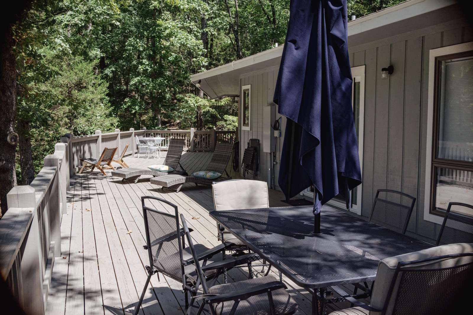 16 acres of peaceful woods and meadow in a cozy, yet highly functional and elegantly updated lake cottage nestled under a limestone bluff with its own spring. Watch wildlife from the massive deck, listen to call of the coyotes, owls, and whippoorwills in the evening. Five minute walk to Shaddox Hollow cove for swimming and kayaking. 5-10 minute drive to hiking and biking on Hobbs State Park. 15 minutes from Rocky Branch and Prairie Creek marinas. Welcome to your NWA home-away-from home!
